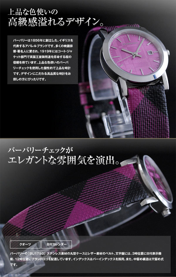 バーバリー [BURBERRY] BU1793 ピンクチェック ウォッチ 腕時計 レディース