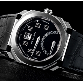 複雑に折り重なる動きで時の流れを楽しむ「オクト バイレトロ(OCTO BI-RETRO)」。時は12時位置のジャンピングアワーで表示する凝った趣向であり、ロマンティックに流れる時間を楽しむための小道具になっている。