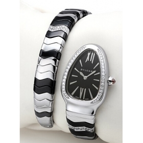 ブルガリ時計コピーの セルペンティウォッチ。 イタリア語で蛇を意味する通り、蛇のように手首に巻きつけて使用します。 こちらは2014年に登場した、セラミックを使用した新作モデルです。 ベゼルとブレスレットにはダイヤモンドが施されてります。 ブルガリの高いデザイン性を感じるモデルです。