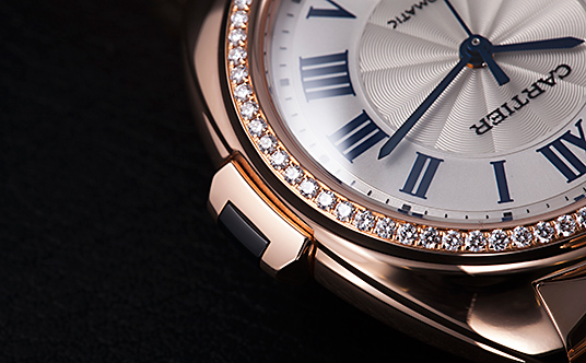 35.0mmと40.0mmのモデルには、カルティエの創業年にちなんで「1847 MC」と名付けられた新しい自動巻きムーブメントを搭載。日付表示の窓はシンメトリーな美しさを壊さぬよう6時位置に設置されている。