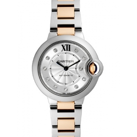 カルティエ時計コピー バロンブルーWE900151 SM 18KYG シルバー文字盤 クォーツ レザー