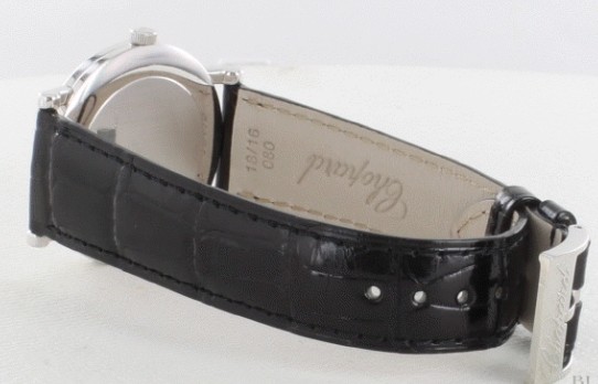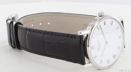 金無垢ホワイトゴールドケースと、ブラックのアリゲーターレザーが見事に調和したクラシックです。完璧 な円を描く33ミリのラウンドケースにはクラシカルなラグが取り付けられ、端正な表情を漂わせています。さらにホワイト文字盤にはケースと同じホワイト ゴールドのバトン型指針とローマンインデックスを配置。このインデックスと針を細くシンプルにすることで、他にはない空間の美しさが生まれています。厚さ もわずか6ミリと非常にエレガント。シンプルで上質な機械式時計を愛する男性に、おすすめの手巻きウォッチです。