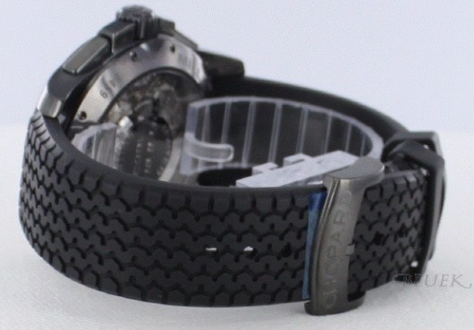 オールブラックのカーボンブラック文字盤の精悍な存在感が男らしく、タイヤの様なラバーベルトはスポー ティな臨場感を携えた世界1000本限定ウォッチです。エンジンを思わせるフェイスには、12時と6時のアラビアインデックスが風防に直接印字され特徴あ るデザインがどこか特別さを感じる。蛍光塗料を施したシルバー指針は視認性に富みます。軽量で丈夫なカーボンを使用し、バックスケルトンでムーブメントの 動きを堪能。世界中のモータースポーツファンを熱狂させるクロノメーターです(スイスクロノメーター協会が高精度なムーブメントに与える公式認定)。