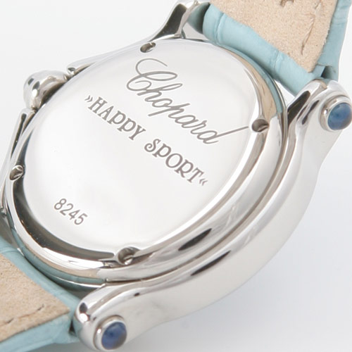 ステンレススティール、クロコレザー、サファイアガラス、ダイヤモンド、ブルーサファイア