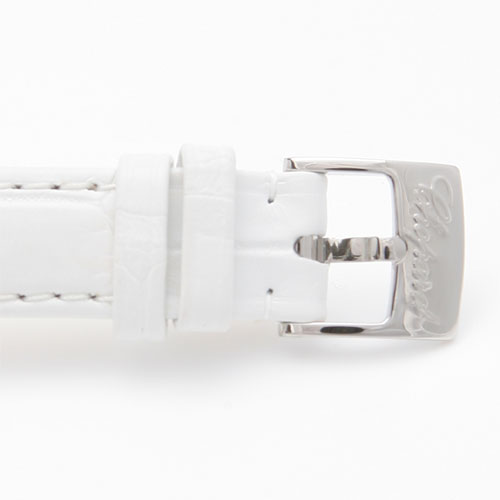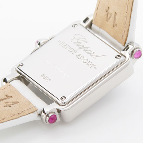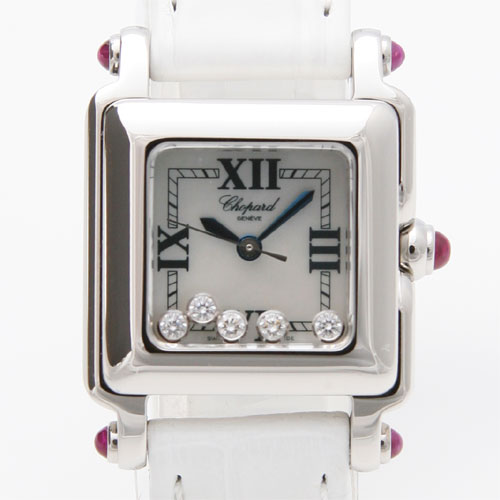 5粒のダイヤモンドが文字盤の上を揺れながらキラキラと流れます。さらにシェル文字盤が光を反射しながら様々な表情に。ケースサイドにはピンクサファイアがバランスよくあしらわれ、可愛らしさの中に高級感漂うデザインになっています。