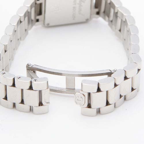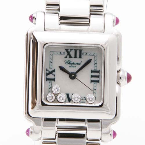 5粒のダイヤモンドが文字盤の上を揺れながらキラキラと流れます。さらにシェル文字盤が光を反射しながら様々な表情に。ケースサイドにはピンクサファイアがバランスよくあしらわれ、可愛らしさの中に高級感漂うデザインになっています。