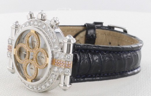 ホワイトゴールド、ピンクゴールド、アリゲーターレザー、サファイアガラス、ダイヤモンド、ピンクサファイア