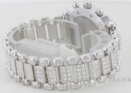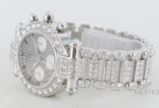 ラウンドボディから文字盤やブレス部分までオールダイヤの壮麗なインペリアルです。ベゼルには大粒のダ イヤがびっしりとラグやプッシュボタンにまで施され、どこからみても美麗な輝きを放ちます。文字盤にはサファイヤのインデックスやシルバーのインダイヤル や指針がエレガントアクティブな時を刻みます。32mmサイズで重厚感が手元にフィットし、華やかなシーンなどで活躍します。