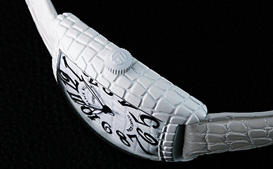 ケースと文字盤を、ストラップのクロコダイルスキンと同じ“斑(ふ)”の模様で仕上げた斬新なコレクションはバリエーションを広げ、その人気をさらに高めていった。 ケースの仕上げはまったく新しいもので、エナメル塗装を二度、焼き付けして高い耐久性を獲得。 そして2015年、同コレクションに新たに登場したのが「ホワイト クロコ(WHITE CROCO)」。その名の通り ケースと文字盤をホワイト仕上げし、ホワイトのクロコダイルストラップをセットしたモデルだ。