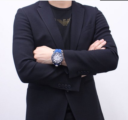 腕時計ベルトの才気溢れるプロデューサーであり、自身も腕時計の情熱的な愛好家であるルーベン・トメッラ氏の「1900年代の懐中時計にラグを付け、リストウォッチに創り変える」という着想から、Gaga Milano - カリカ・マヌ アーレ・ラインは創りだされます。GaGa(ガガー)とはミラネーゼ独特の言い回しで『ダンディ』を意味します。「クラシック」な時計を踏まえながら、新しさを表したかったということで、もともとは「懐中時計」という昔からあるコンセプトに、ベルトを通して腕時計にしたのが始まりで、素材には、チタンやカーボンなどの近未来なものを用いて、新しさを表したそうです。その独創性に惹かれ数々の有名人が愛用しています。2010年のサッカーワールドカップ日本代表の本田圭佑選手が両腕に着用していたことや、その他にもメジャーリーガーの松坂大輔選手や、某雑誌で活躍しているモデルのパンツェッタ・ジローラモさん等、ガガミラノは愛用者を魅了し続けています。