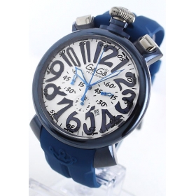 ガガ・ミラノ独特のデザインにクロノグラフ機能搭載モデル。文字盤に広がる大型のインデックスが他にはない唯一無二の特徴です。