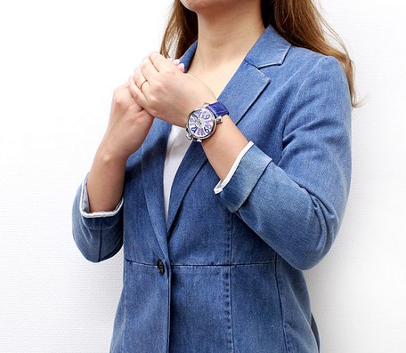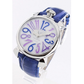 個性的なガガミラノの人気モデルと言え、48mmのビックフェイスに文字盤いっぱいにデザインされたカラフルなアラビアインデックスが特徴のモデルです。