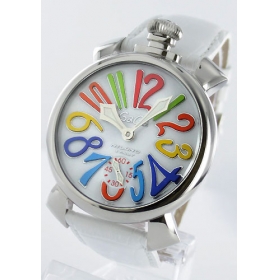 ガガミラノ 腕時計コピーマニュアーレ48mm 手巻き スモールセコンド レザー ホワイト メンズ 5010.1