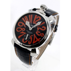 個性的なガガミラノの人気モデルと言え、48mmのビックフェイスに文字盤いっぱいにデザインされたカラフルなアラビアインデックスが特徴のモデルです。