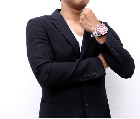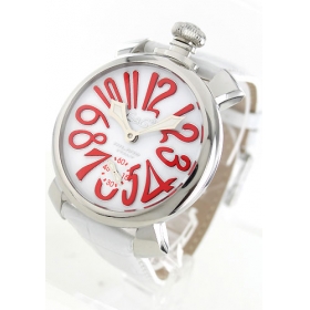 個性的なガガミラノの人気モデルと言え、48mmのビックフェイスに文字盤いっぱいにデザインされたカラフルなアラビアインデックスが特徴のモデルです。