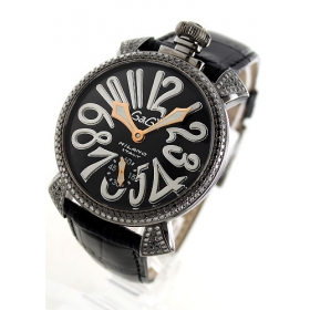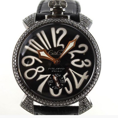 個性的なガガミラノの人気モデルと言え、48mmのビックフェイスに文字盤いっぱいにデザインされたカラフルなアラビアインデックスが特徴のモデルです。