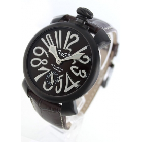 個性的なガガミラノの人気モデルと言え、48mmのビックフェイスに文字盤いっぱいにデザインされたカラフルなアラビアインデックスが特徴のモデルです。