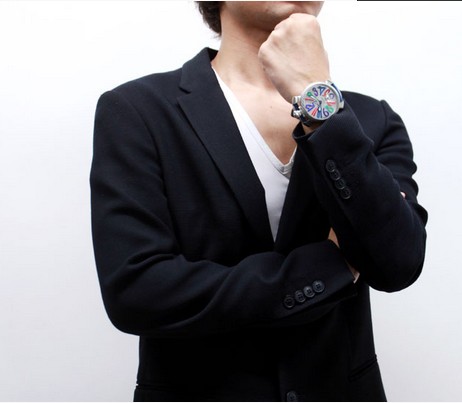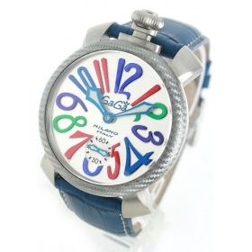 個性的なガガミラノの人気モデルと言え、48mmのビックフェイスに文字盤いっぱいにデザインされたカラフルなアラビアインデックスが特徴のモデルです。