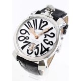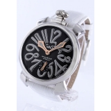 - ガガミラノコピー腕時計 マニュアーレ48mm 手巻き レザー ホワイト/ブラック メンズ 5010.6