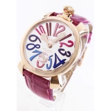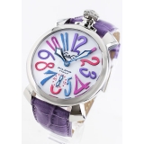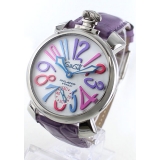 - ガガミラノ 腕時計コピーマニュアーレ48mm 手巻き スモールセコンド レザー ライトパープル/ホワイト メンズ 5010.09S