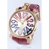 - ガガミラノコピー腕時計 マニュアーレ48mm 手巻き スモールセコンド レザー ピンク/PGPシルバー メンズ 5011.09S