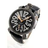 - ガガミラノコピー腕時計 マニュアーレ48mm 手巻き ダイヤ&ブラックダイヤモンド レザー ブラック メンズ 5012.1D.6