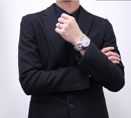 46mmサイズに厚さ11mmの薄型ボディが、スーツ着用時など袖に歪みをつくらないデザインです。クォーツムーブメントを搭載し、デザインと機能性を両立させたシリーズです。