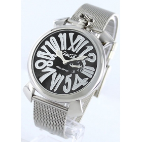 腕時計ベルトの才気溢れるプロデューサーであり、自身も腕時計の情熱的な愛好家であるルーベン・トメッラ氏の「1900年代の懐中時計にラグを付け、リストウォッチに創り変える」という着想から、Gaga Milano - カリカ・マヌ アーレ・ラインは創りだされます。GaGa(ガガー)とはミラネーゼ独特の言い回しで『ダンディ』を意味します。「クラシック」な時計を踏まえながら、新しさを表したかったということで、もともとは「懐中時計」という昔からあるコンセプトに、ベルトを通して腕時計にしたのが始まりで、素材には、チタンやカーボンなどの近未来なものを用いて、新しさを表したそうです。その独創性に惹かれ数々の有名人が愛用しています。2010年のサッカーワールドカップ日本代表の本田圭佑選手が両腕に着用していたことや、その他にもメジャーリーガーの松坂大輔選手や、某雑誌で活躍しているモデルのパンツェッタ・ジローラモさん等、ガガミラノは愛用者を魅了し続けています。