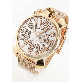 腕時計ベルトの才気溢れるプロデューサーであり、自身も腕時計の情熱的な愛好家であるルーベン・トメッラ氏の「1900年代の懐中時計にラグを付け、リストウォッチに創り変える」という着想から、Gaga Milano - カリカ・マヌ アーレ・ラインは創りだされます。GaGa(ガガー)とはミラネーゼ独特の言い回しで『ダンディ』を意味します。「クラシック」な時計を踏まえながら、新しさを表したかったということで、もともとは「懐中時計」という昔からあるコンセプトに、ベルトを通して腕時計にしたのが始まりで、素材には、チタンやカーボンなどの近未来なものを用いて、新しさを表したそうです。その独創性に惹かれ数々の有名人が愛用しています。2010年のサッカーワールドカップ日本代表の本田圭佑選手が両腕に着用していたことや、その他にもメジャーリーガーの松坂大輔選手や、某雑誌で活躍しているモデルのパンツェッタ・ジローラモさん等、ガガミラノは愛用者を魅了し続けています。