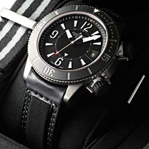 バンド: 黒カーフ革 Ti製尾錠 交換用コーデュラナイロン製ダイバーズストラップ付
