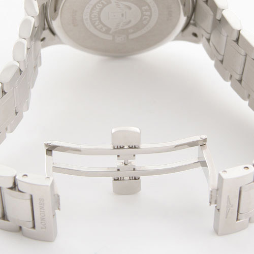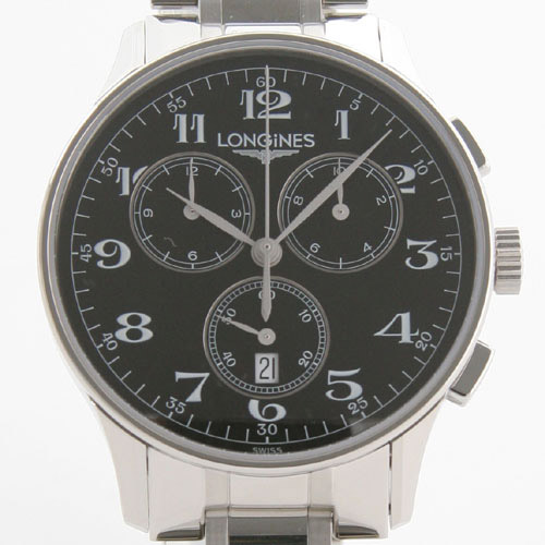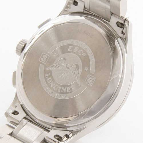 クロノグラフ搭載。インダイヤルはそれぞれ2時位置が1/10秒積算計、6時位置がスモールセコンド、10時位置が12時間計。6時位置には日付け表示が。