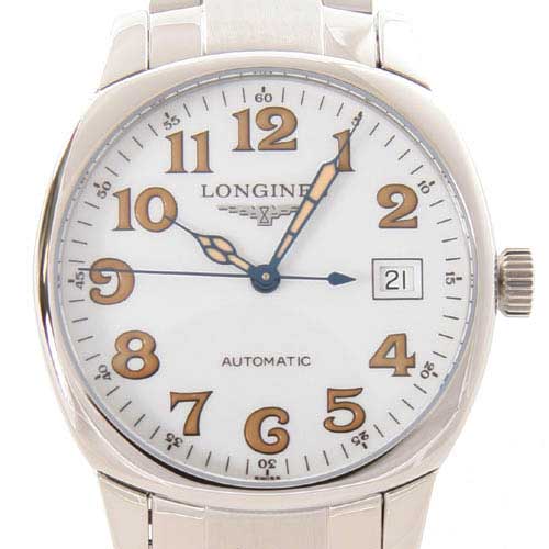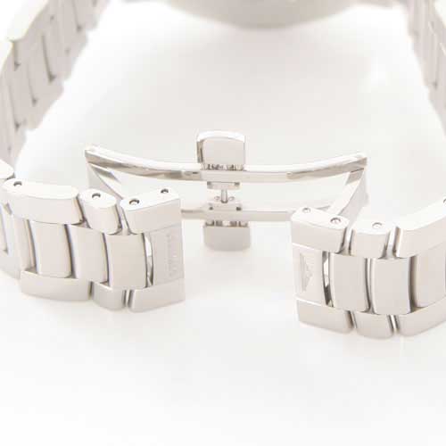 特徴的な形のケースの中にはシンプルなホワイトの文字盤に個性的なアラビアインデックスが並んでいます。指針には蛍光塗料が施され視認性も抜群。3時位置には日付表示も搭載され、実用性に優れた仕上がりになっています