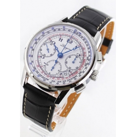 41ミリケースのホワイトラッカー文字盤に、赤、青、黒の3色で3種類のタキメータースケールが表示さ れたヘリテージクロノグラフです。青いブレゲ針や平面的なインダイヤルなど、クラシカルな表情を浮かべながらも非常に楽しいダイヤルを、ブラックのアリ ゲーターベルトが見事に引き締めています。この高級感漂うベルトに白ステッチを入れることで、さりげなくドレスダウン。ビジネススーツをはじめ、カジュア ルな装いにも幅広く対応します。ヴィンテージ感あふれるクロノグラフをお探しの方には、極めて魅力的な一本です。