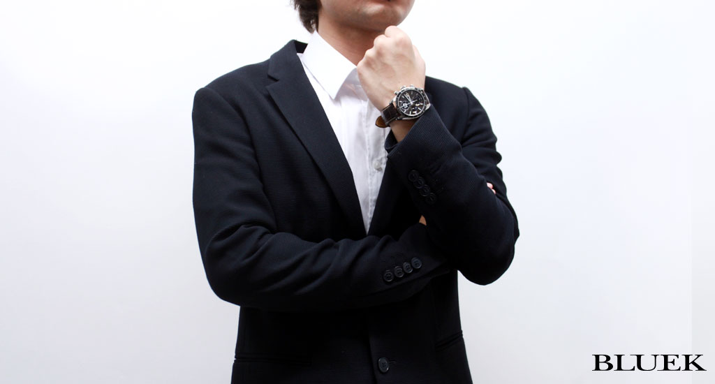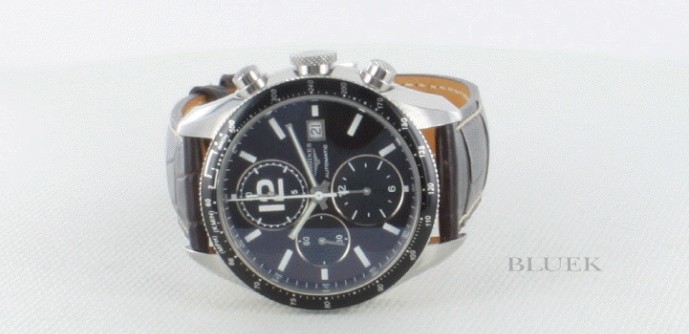 メタリックなボディにブラックのベゼルや文字盤が浮かび、ブラウンレザーがビタースポーティに仕上げた グランヴィテスです。フェイスにはブラックの12時インダイヤルやタキメーターがデザインアクセントとなり、蛍光塗料を施した指針やバーインデックスは視 認性に富みます。バックスケルトンでムーブメントの動きを堪能。普段使いからジャケットスタイルまで活躍するウォッチです。