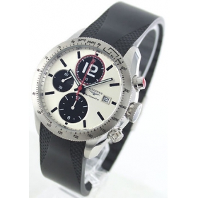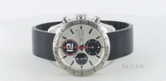 メタリックなボディにシルバーのベゼルや文字盤が浮かび、ブラックラバーが個性派カジュアルに仕上げた グランヴィテスです。フェイスにはレッドの12時インダイヤルやタキメーターがデザインアクセントとなり、蛍光塗料を施した指針やバーインデックスは視認 性に富みます。バックスケルトンでムーブメントの動きを堪能。普段使いからジャケットスタイルまで活躍するウォッチです。