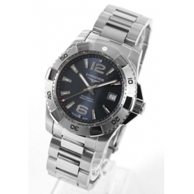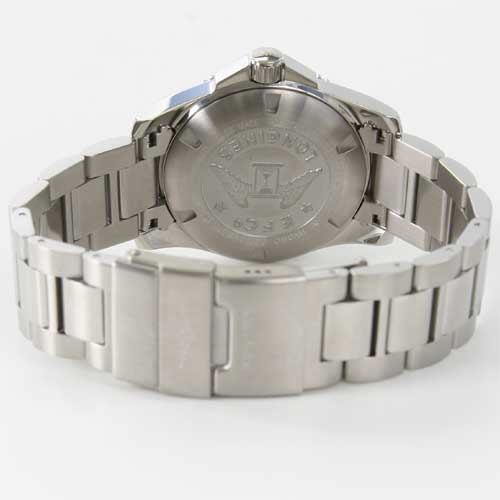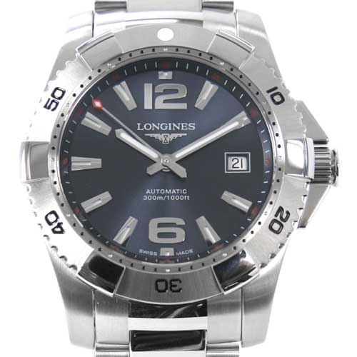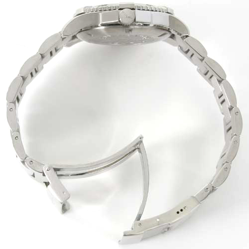 ブルー文字盤に蛍光塗料を施したシルバーの指針、アラビアとバーのインデックスを配置。12時位置にブランドロゴ、3時位置に日付表示。6時位置にオートマチックであることを示す刻印。