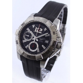 「極めて優れた」ダイビングウォッチ。HydroConquestシリーズは、海を制することにひたむ きな方や海に情熱を傾ける方にとって欠かせない存在と言えます。水の世界で遭遇する過酷な状況に対応しており、300m防水で、逆回転防止回転ベゼル、ね じ留め式ケース、ねじ込み式リューズとその側面を保護するリューズプロテクター、ダイビング用一体型延長ピース付き二重安全フォールディングクラスプを備 えています。このように妥協のない安全を実現する確実な保証は、静寂に包まれた水の世界と完璧に調和しています。パフォーマンスとエレガンス。ロンジンな らではのコンビネーションです。ステンレスの輝きとブラック文字盤との相性が良く、レッドのアクセントがワイルドな印象です。裏蓋にはロンジンEFCゴー ルデンウィングのエンブレムが刻印されています。
