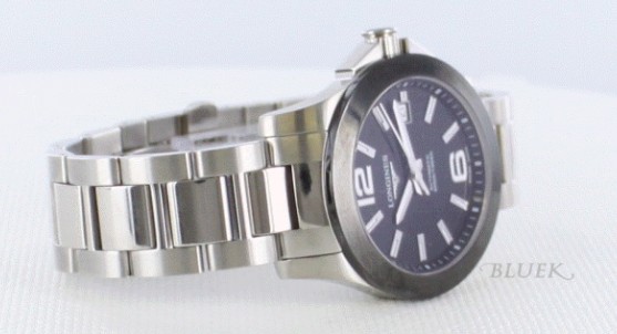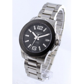 ロンジンは1832年にスイスのサンティミエにて創業。1919年から国際航空連盟に公式採用され、人 類初の大西洋単独無着陸飛行の成功へと導き、航空機産業を躍進させた。世界130ヶ国以上に展開しているスイスの高級腕時計メーカー。Conquest は、ロンジンのスポーティーなエレガンスを表現した好例と言えます。ベゼル、カボションリューズ、リンクの美しさに特にこだわっており、いずれもセラミッ ク製となっています。この極めて優れた素材は、永遠の魅力と最先端の技術的特徴を兼ね備えています。ステンレススティールとセラミックを巧みに融合させる とともに、パフォーマンスとエレガンスをも巧みに融合させることによって、極めて過酷なスポーツを行う方々のあらゆる要求に対応する技術特性を備えていま す。モノトーンのカラーリングがシンプルだけどお洒落。日付表記に300m防水機能を採用し、日常使いからアクティブに着用可能です。裏蓋にはロンジン EFCゴールデンウィングのエンブレムが刻印されています。