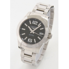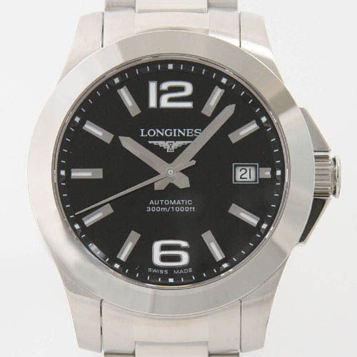 ブラック文字盤にシルバーの指針と蛍光塗料が施されたシルバーのアラビアとバーインデックスを配置。12時位置にブランドロゴ、3時位置に日付表示を装備。