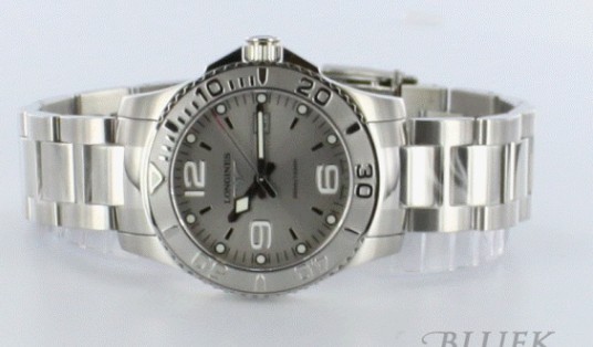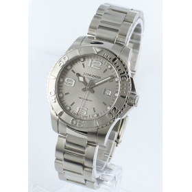 「ハイドロ コンクェスト(HydroConquest)」とは「水の世紀の冒険家」を意味し、自然との共存を求めて独自の挑戦を続ける冒険家のために開発された時計 です。ハイドロコンクエストの特長として、ダイバー時計でもあり「クオーツ(電池式)」タイプにすることで、薄めのケースを使用しており、腕にかかる負担 を抑えたつくりになっています。300m防水機能やダイビングウェットスーツの上からでも着用できるようになっているブレスは時計の脱落を防ぐための二重 ロック式バックルになっています。大きく配されたアラビアインデックスや太目の指針は視認性も抜群。オールシルバーで統一され主張しすぎることなくスタイ ルに馴染みます。