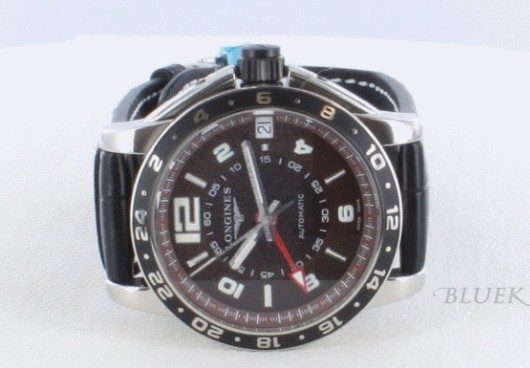 ギョーシェ模様入りのブラウン文字盤や、ブラックのベゼルはレースのスピード感を感じさせレザーが堅牢 なボディをしなやかに支えるレーシングモデルです。視認性に富む蛍光塗料を施したシルバー指針とダッシュボードの様なアラビア・バーインデックスがアク ティビティにエンジンを唸らせハンドルをきります。文字盤外周にGMT機能搭載(世界標準時間の事で、2箇所以上の時刻を同時に把握できる)でレッドの GMT針はインパクトを与え、3時位置にさりげない日付表示を配したスポーティなデザインです。