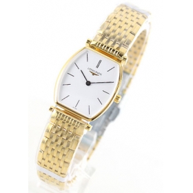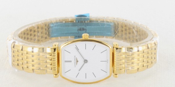 光沢ある華やかなゴールドケースに、ケースと同じゴールドブレスとホワイトダイヤルを組み合わせた、グ ランドクラシックです。特徴的なトノーケースは、ロンジン創設時のデザインを忠実に再現したもの。時代や流行を超えて長く愛される、永遠のコレクションに なっています。ホワイトダイヤルには、スマートなブラック指針とバーインデックスを配置。高い視認性を発揮しながら、エレガントでクラシカルな魅力もたっ ぷり伝えています。まさにシンプルで美しいデザインに、ゴールドの輝きが華を添えるスタンダードウォッチです。