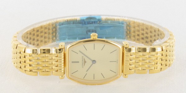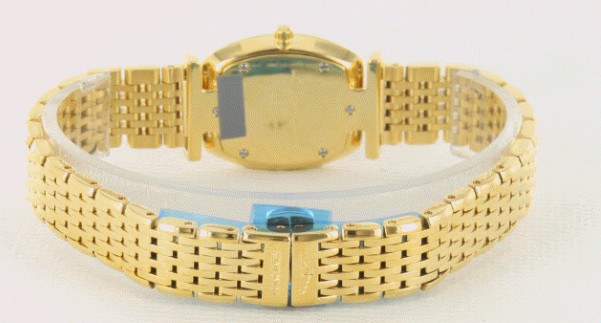 上品な輝きのシャンパンゴールドダイヤルと、華やかな光沢のゴールドケース&ブレスが見事にマッチし た、トノー型グランドクラシックです。24×22ミリサイズは、非常に女性らしく優美な雰囲気がたっぷり。腕に着けたときもゴールドの輝きとクラシカルな デザインが美しく馴染み、エレガントでゴージャスな印象を広げてくれます。ダイヤルにはスマートなブラック指針とバーインデックスを配置。柔らかなゴール ドに細身のブラックが映えて気品ある表情に。普段使いからパーティシーンまで、幅広く使えるブレスウォッチです。