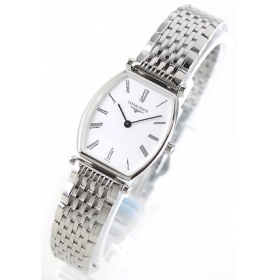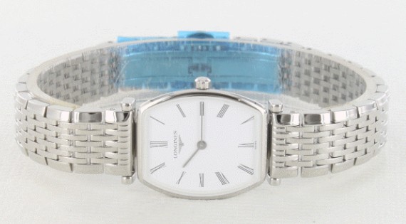 独特なフォルムのトノーケースが印象的な、グランドクラシックです。そのクラシカルで優美なたたずまい は、長い歴史を誇るロンジンの中でも、永遠のスタンダードコレクションというポジションを与えられています。つややかなステンレスケースと9連ブレスで仕 上げられたこのモデルは、シンプルなデザインと女性らしくエレガントな表情が魅力。ホワイトダイヤルにはブラック指針とローマンインデックスを採用し、そ の絶妙に細いラインが視認性を確保しながらも、時代を超えて愛されるクラシカルな美しさを表現しています。