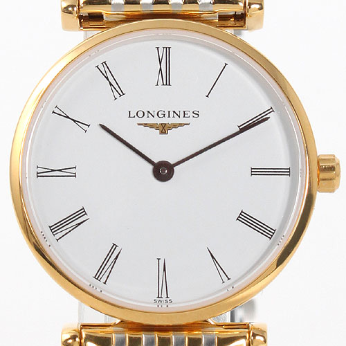 ホワイト文字盤にブラックの指針、ローマンインデックスを配置。12時位置にブランドロゴを搭載。