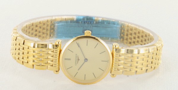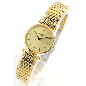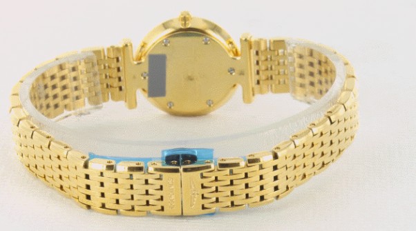 女性の手元を美しくゴージャスに見せてくれる、オールゴールドのグランドクラシックです。中でもシャン パンゴールドダイヤルの上品な光沢と、つややかなゴールドケース&ゴールド9連ブレスとの組み合わせは抜群。小ぶりな24ミリサイズと相まって、女性らし く華奢な雰囲気と、豪華で華やかな印象が同時に広がります。ダイヤルには細身のブラック指針と、バーインデックスを配し、視認性を確保しつつ、スマートで エレガントな表情をプラス。まさにクラシカルな美しさに、ゴールドの輝きが見事に融合したブレスウォッチです。