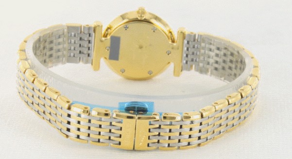 美しいギョーシェ模様入りのゴールドダイヤルに、細身のローマンインデックスとブラック指針でエレガン トかつ華やかに仕上げられたグランドクラシックです。見事な光沢のゴールドケースに採用されたのは、ゴールドとシルバーの9連コンビブレス。ゴールドの輝 きにサテン仕上げのシルバーが組み合わされることで、上品で落ち着いた雰囲気とクラシカルな魅力がいっそう際立って見えます。24ミリサイズも非常に女性 らしく、しなやかなブレスとともに手元をスマートに演出。まさに大人の女性にふさわしいブレスウォッチです。