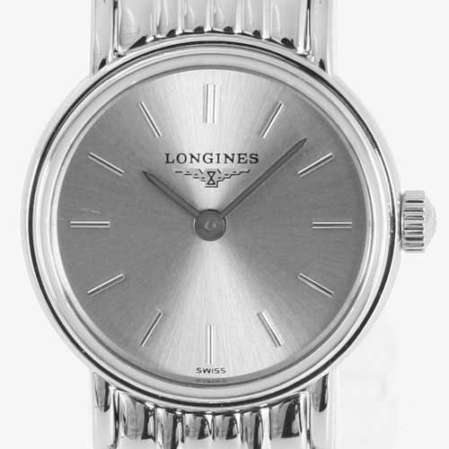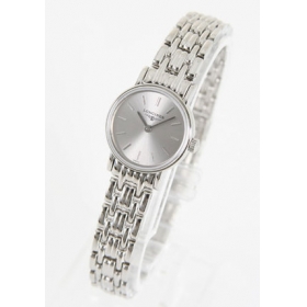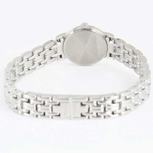 グレー文字盤にシルバーの指針、バーインデックスを配置。12時位置にブランドロゴ。