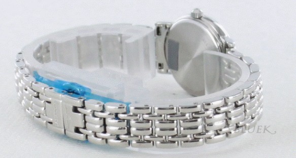 ホワイト文字盤に艶やかな5連ステンレスブレスが落ち着いた知的スタンダードに仕上げた時計です。フェイスにはシンプルにブラックのローマンインデックスと指針や3時位置の日付表示、わずか6mmの厚さで45gが軽快滑らかにフィット。手元を高貴なオーラで包みます。
