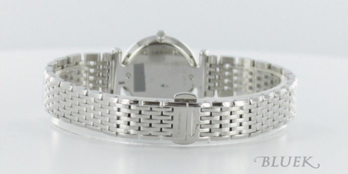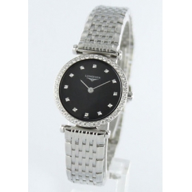スイスの腕時計老舗ブランドであるロンジン。ラウンドケースが代表的なデザインで、シンプルにこだわっ たすっきりとしたデザインにはロンジンの歴史を感じさせる堂々とした風格が漂うグランドクラシックシリーズ。一切の飾り気を排除したシンプルなデザインで 年齢を問わず着けていただけるベーシックなフォルム。落ち着きのあるブラック文字盤がダイヤモンドの美しい輝き、存在感を一層引き立てたゴージャスなデザ イン。まばゆいばかりの輝きに見とれてしまいます。9連からなるブレスタイプのベルトが華奢な腕にピッタリとフィットします。
